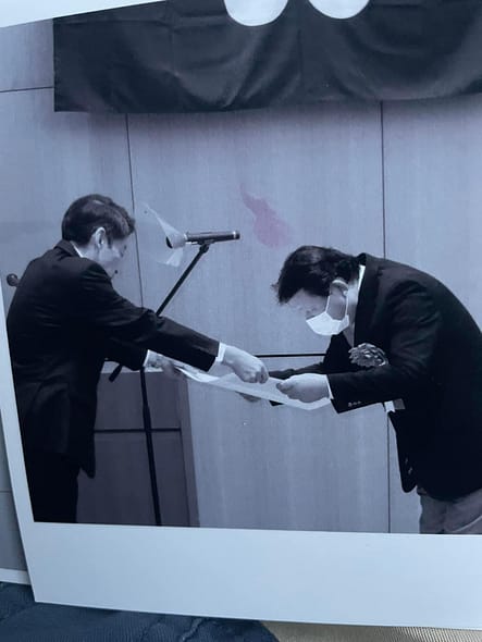 ■先日、(九州国立博物館を愛する会)が(福岡県地域文化功労者表彰)を受け、代表として、福岡県知事から直接表彰状をいただく写真をもらえましたので、載せました。(九博を愛する会)の先輩方、また現在の会員さんたちが九州国立博物館を長年にわたり、愛し、支援をしたきたことが評価されたものです。
