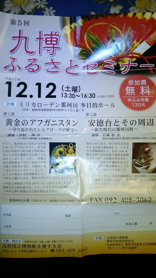 1月から始まる九州国立博物館の特別展の解説をいち早く聞き、また那珂川町の史跡の耳寄りな話を聞けます。