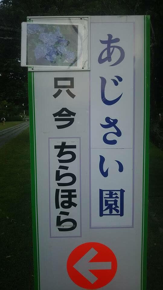 天拝公園で紫陽花の花情報の看板が立ちました。私も時折お伝えしたいと思いました。