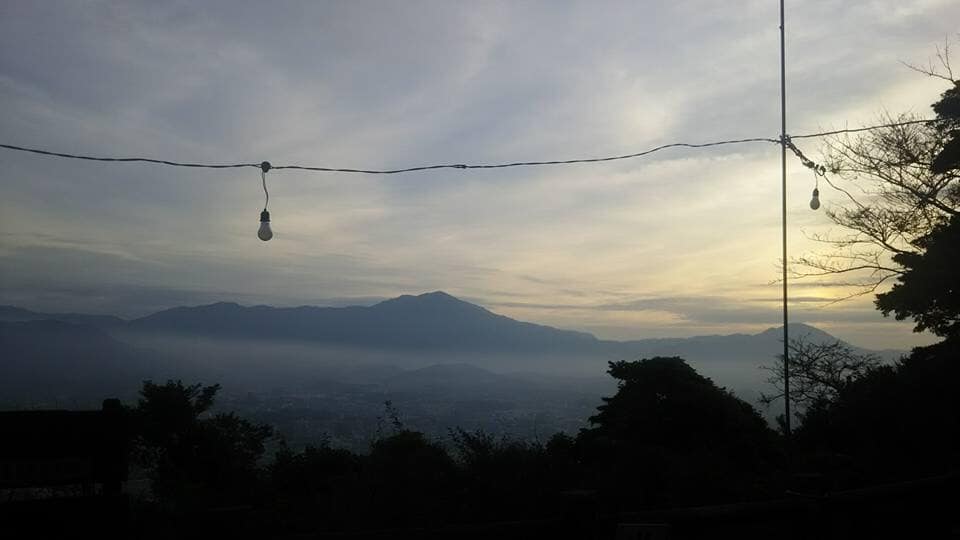 天拝山山頂報告今朝の気温は22℃湿度は85%です。天拝山山頂では今晩の観月会の為の電灯が設置されていました。