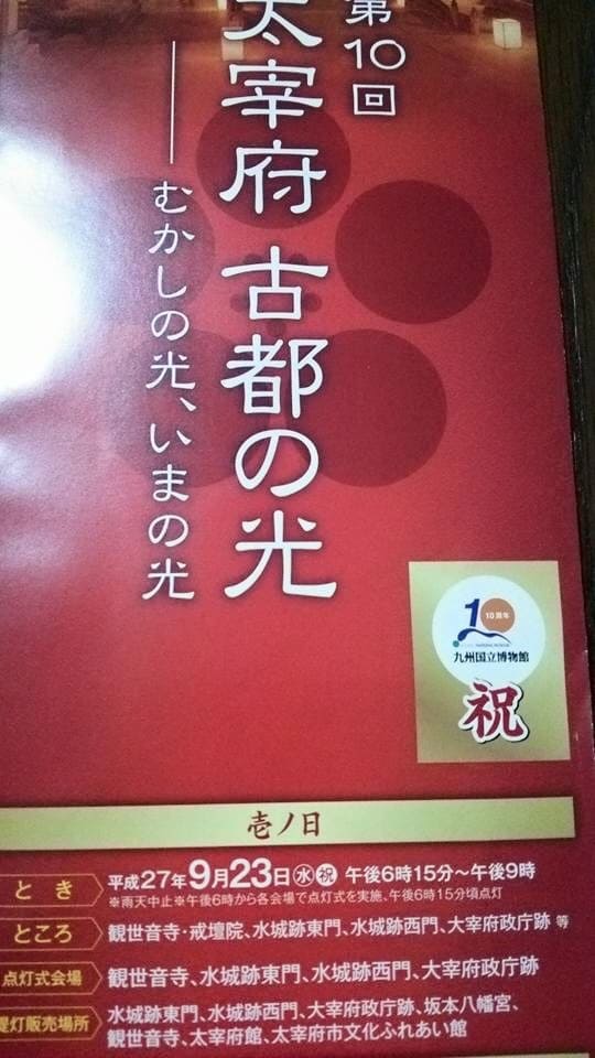 天拝山山頂報告 今朝の気温は21℃湿度は91%曇り。 9月に太宰府周辺で古都の光の行事があります。 私たち九州国立博物館博物館を愛する会は 9月25日に九州国立博物館の前で 光のオブジェに参加し、影絵も開催します。 ぜひ25日夕方九州国立博物館の前の 広場にきてください。きれいですよ。 あおぞら保険はどんな会社? 会社案内をみる あおぞら通信・情報誌! こちらから