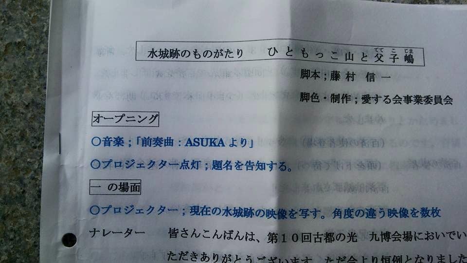天拝山山頂報告 今朝の気温は27℃湿度は70%です。 昨日は九州国立博物館を愛する会の 事業委員会に参加しました。 9月25日太宰府で開催される古都の光で、 九州国立博物館を愛する会は〔影絵〕を 九州国立博物館前の広場で上演します。 〔水城跡物語〕です。 私も.〔百済の使者役〕をもらいました。 写真はその台本です。 練習をしなくては! 事業委員会のみなさんお疲れ様です 1. 落ち着いて対応 負傷者の救護・路上の危険防止。(119番) 2. 示談は避けましょう 警察への届け(110番) 3. 確認事項 事故状況の確認(目撃者がいれば、その方の電話番号)事故の相手の確認(名前・車の登録の番号・電話番号 お問い合わせ もしもの時の事故対応