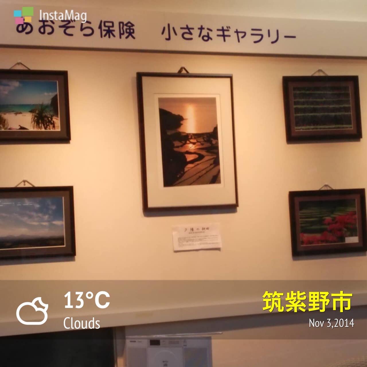 天拝山山頂報告 今朝の気温は 11度、湿度は59%です。 昨日と違いカラッとしています。 今日は文化の日です。 写真はあおぞら保険の店舗の 小さなギャラリーを紹介しました。 あおぞら保険の仲間、 桑野氏の写真作品展をしています。 どうぞお寄りください。 文化の日 博物館、美術館回りをするのも良いのでは? わたしは仕事です。 1. 落ち着いて対応 負傷者の救護・路上の危険防止。(119番) 2. 示談は避けましょう 警察への届け(110番) 3. 確認事項 事故状況の確認(目撃者がいれば、その方の電話番号)事故の相手の確認(名前・車の登録の番号・電話番号 お問い合わせ もしもの時の事故対応