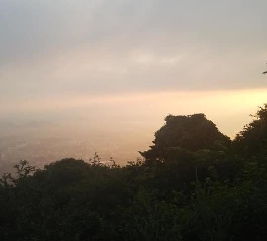 今朝は19度宝満山は雲ですっぽり、朝日で少し幻想的ですね。