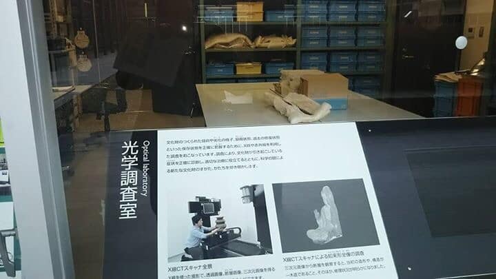 九州歴史資料館の中庭から発掘された遺物の修復作業を誰でも見ることできるようになっているんですね。