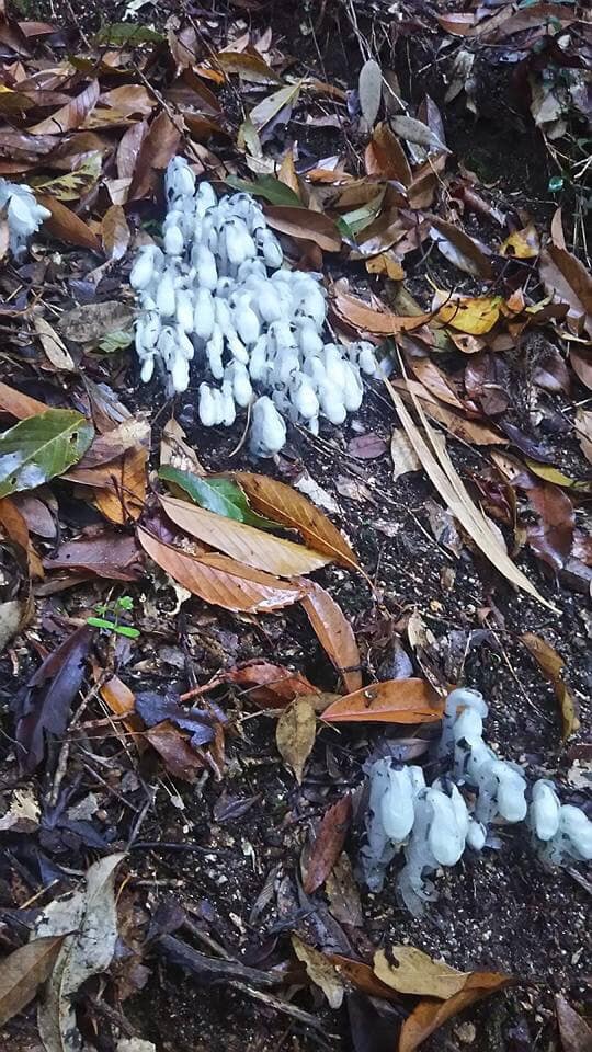 今朝も鳥の鳴き声が元気よく聴こえます。中腹の荒穂神社のかたわらに銀竜草がでていました。