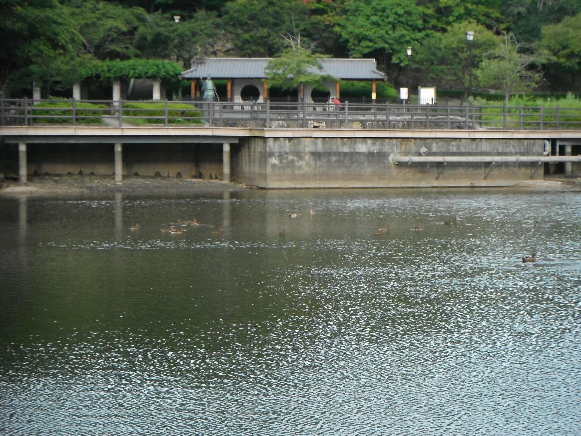武蔵寺公園の池のつがいのかもが、いつのまにか飛