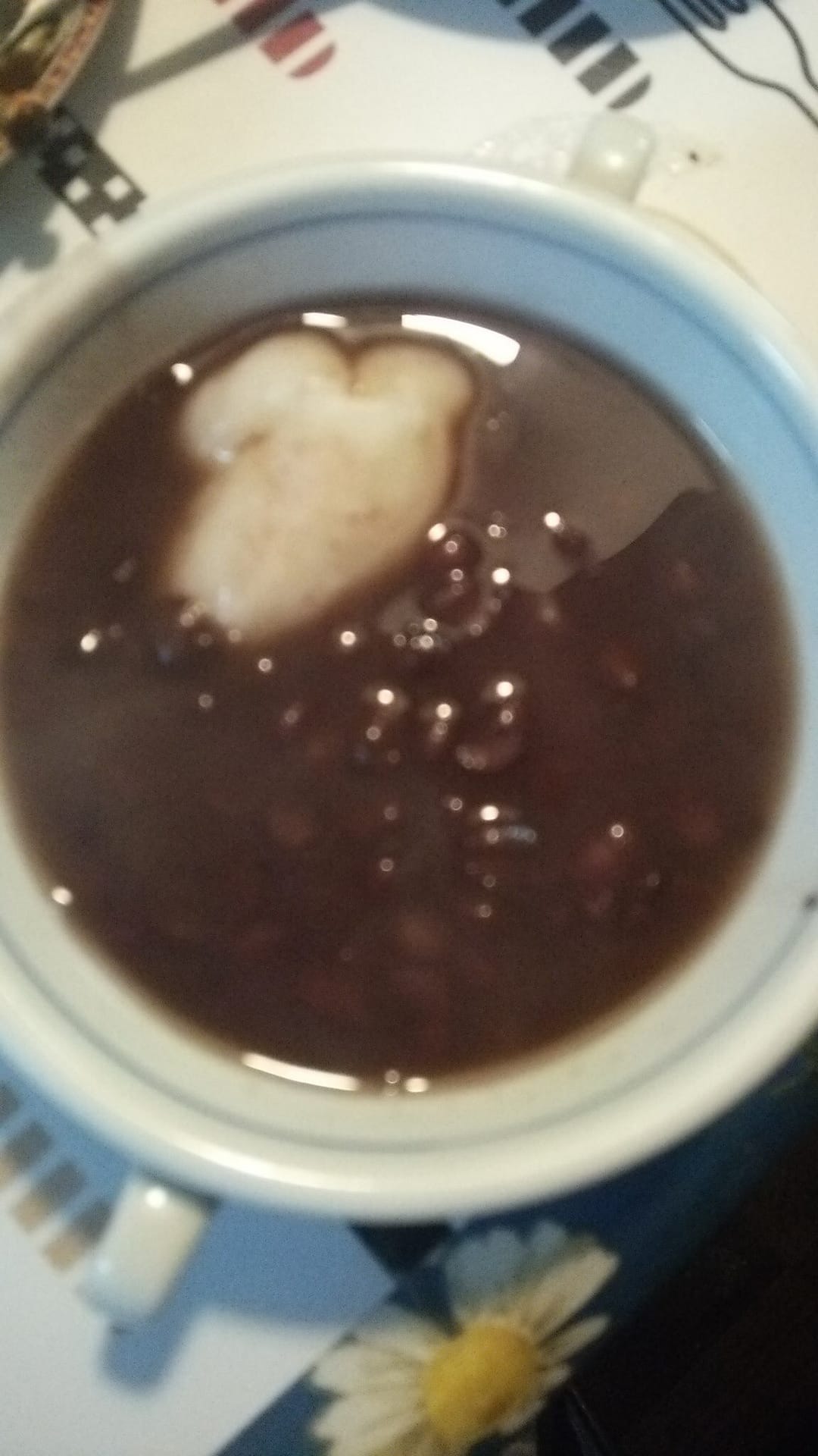 参加した家内がいただいてきた餅がはいったぜんざいです。
