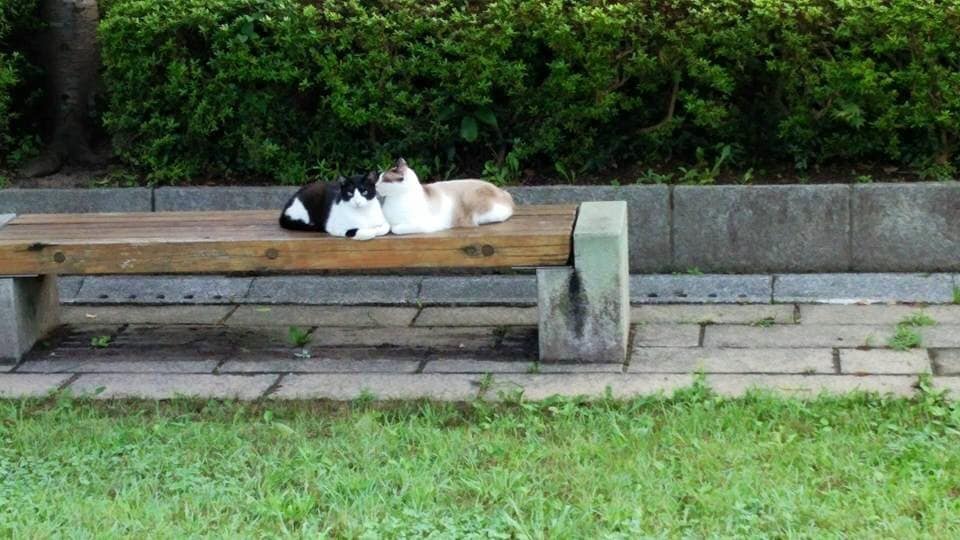 天拝公園で2匹の猫が