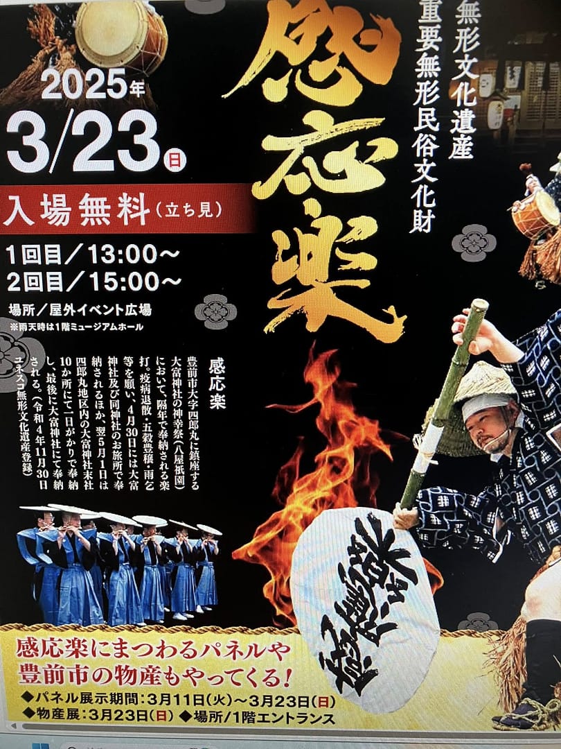 明日、13時、15時に九州国立博物館のイベント広場で、ユネスコ無形文化遺産、国指定重要無形文化財の感応楽が開催されます!見学に行かれませんか?