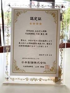 損保ジャパン社の代理店認定制度でトップグレード代理店として4年連続認定を受けました。持続性のある地域のモデル代理店として引き続き、お客さま本位の業務運営実現を目指します。